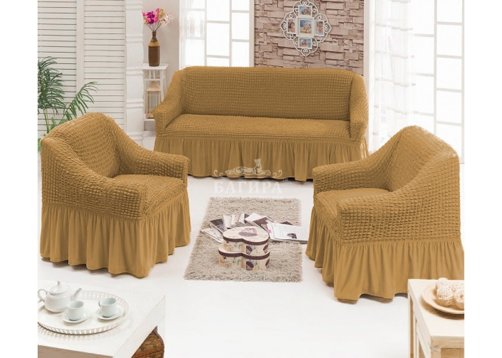 Набор чехлов на мягкую мебель Горчичный