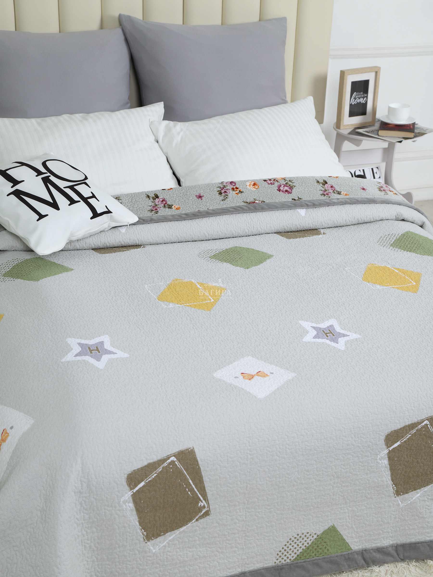 Это стильное и элегантное покрывало привнесет уют и комфорт в любое пространство Вашего дома. А благодаря двустороннему дизайну Вы можете легко менять вид Вашего интерьера, просто перевернув покрывало.