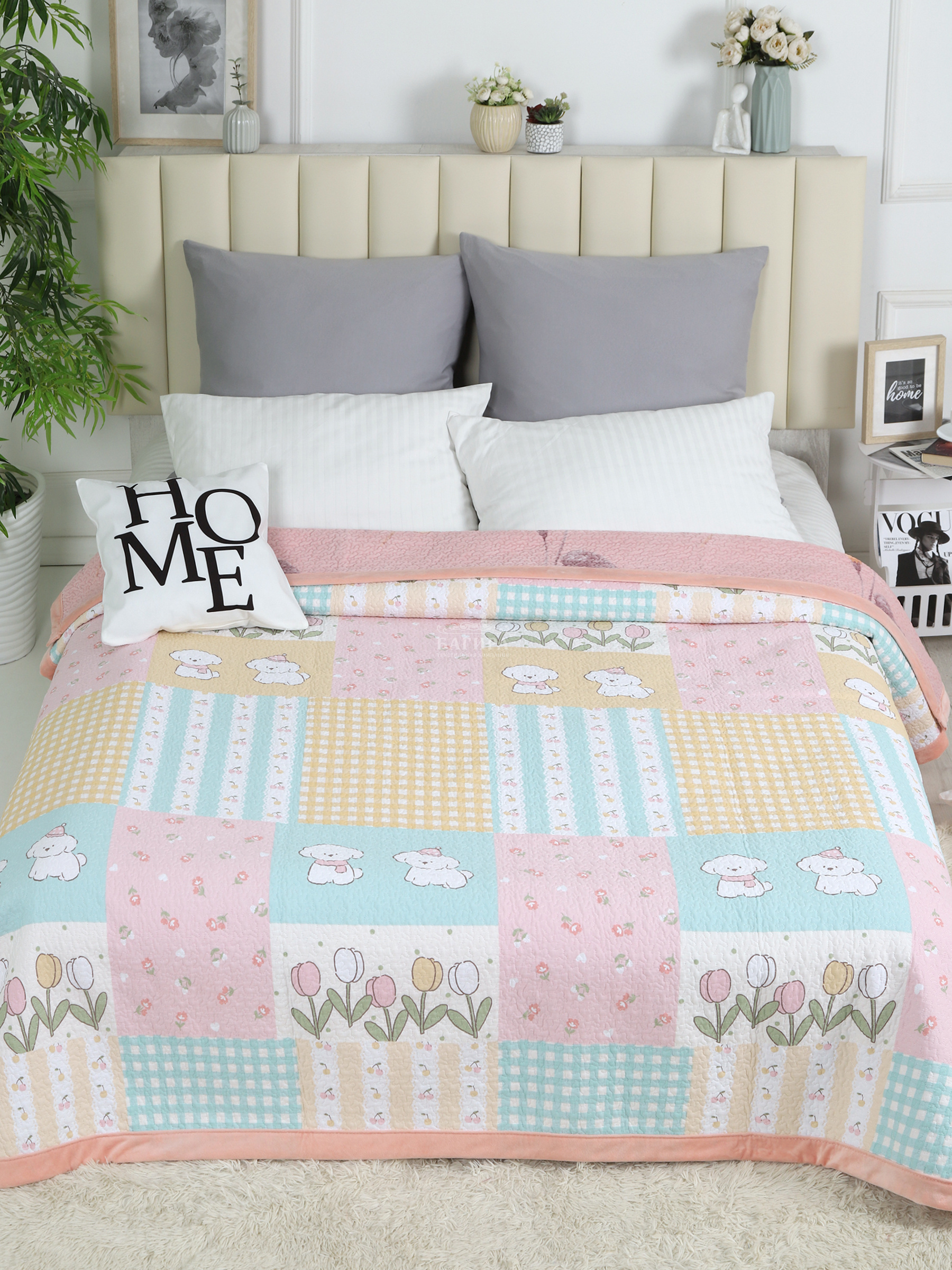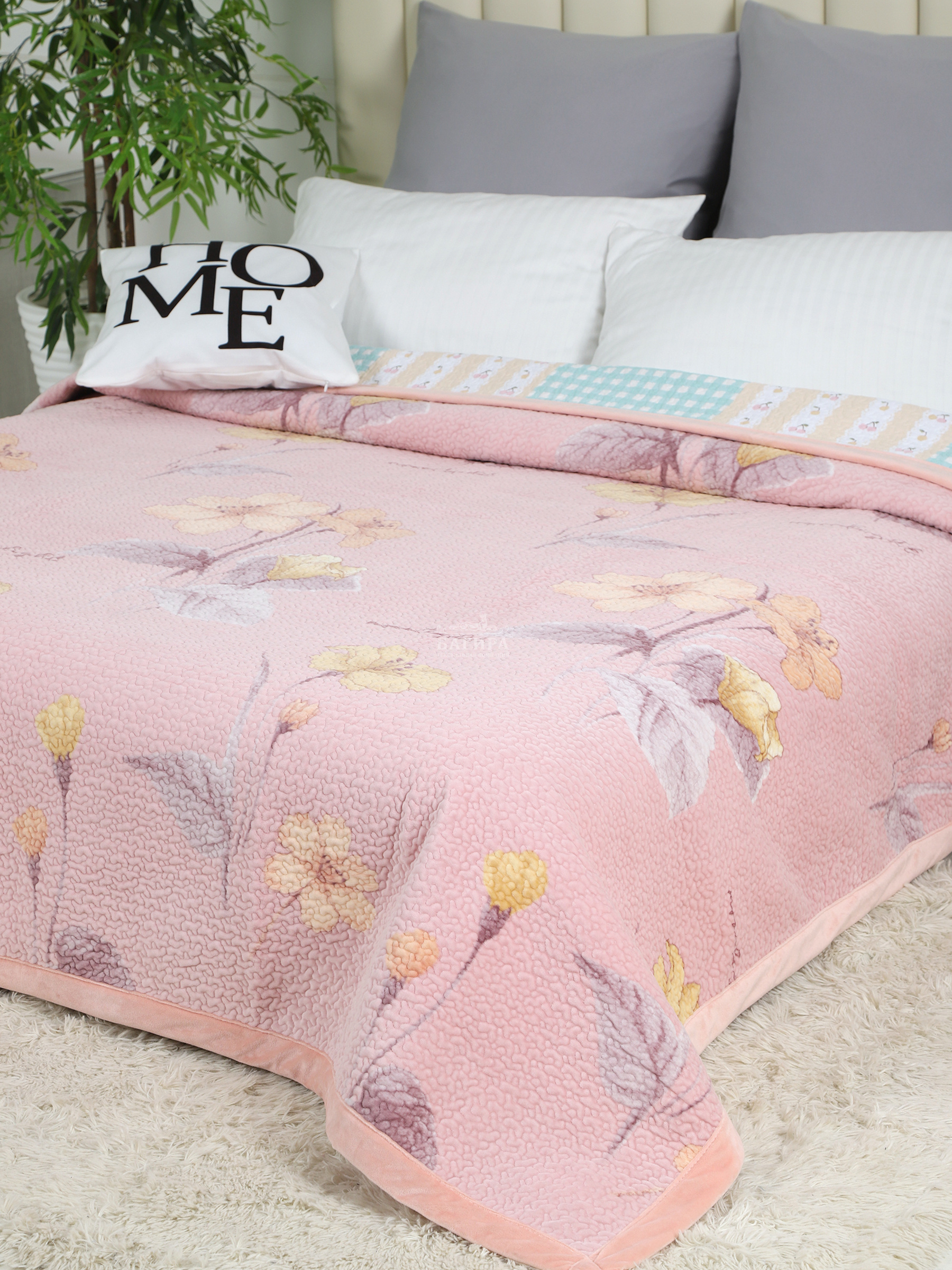 Это стильное и элегантное покрывало привнесет уют и комфорт в любое пространство Вашего дома. А благодаря двустороннему дизайну Вы можете легко менять вид Вашего интерьера, просто перевернув покрывало.