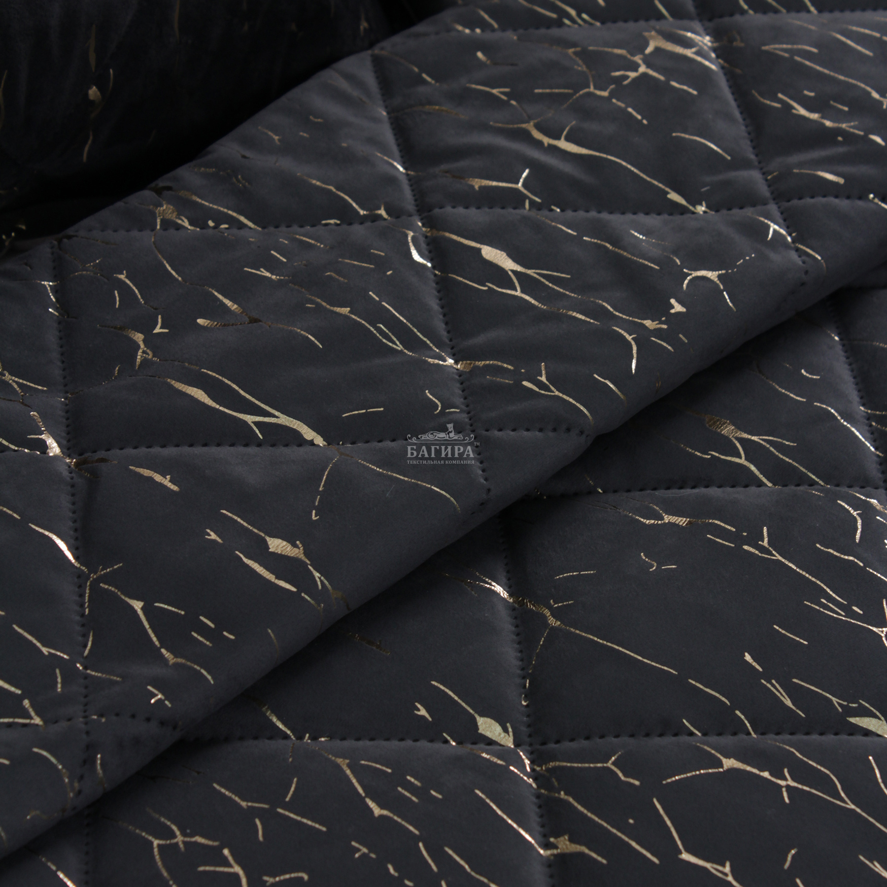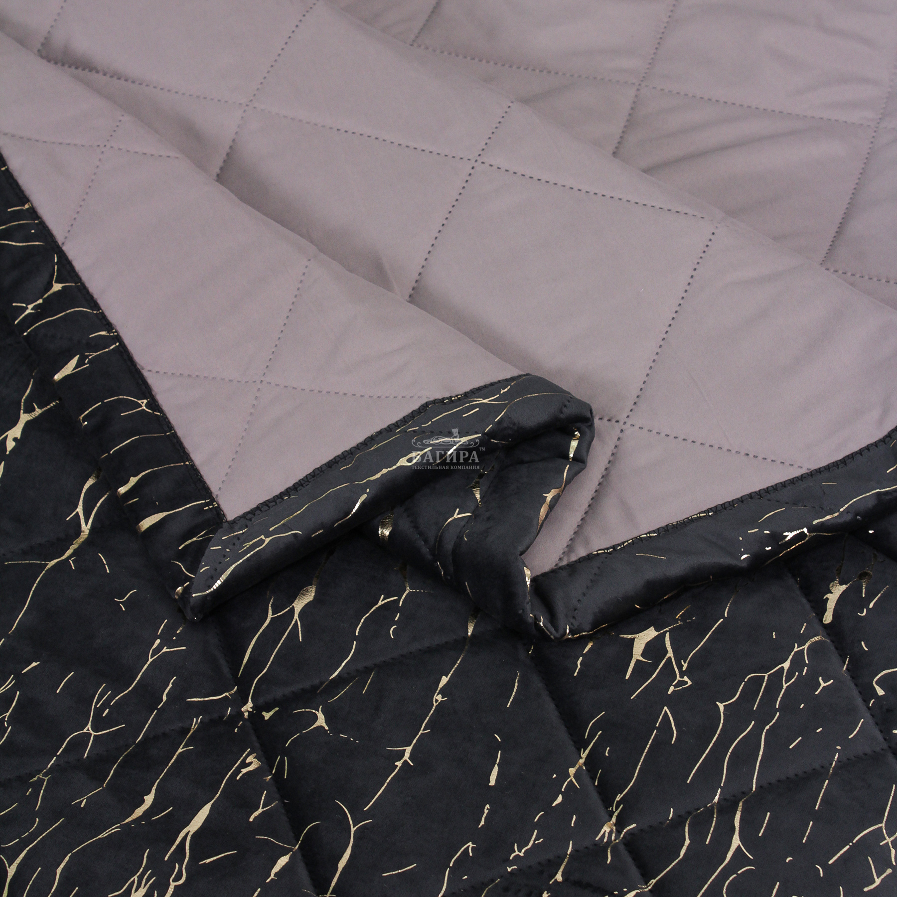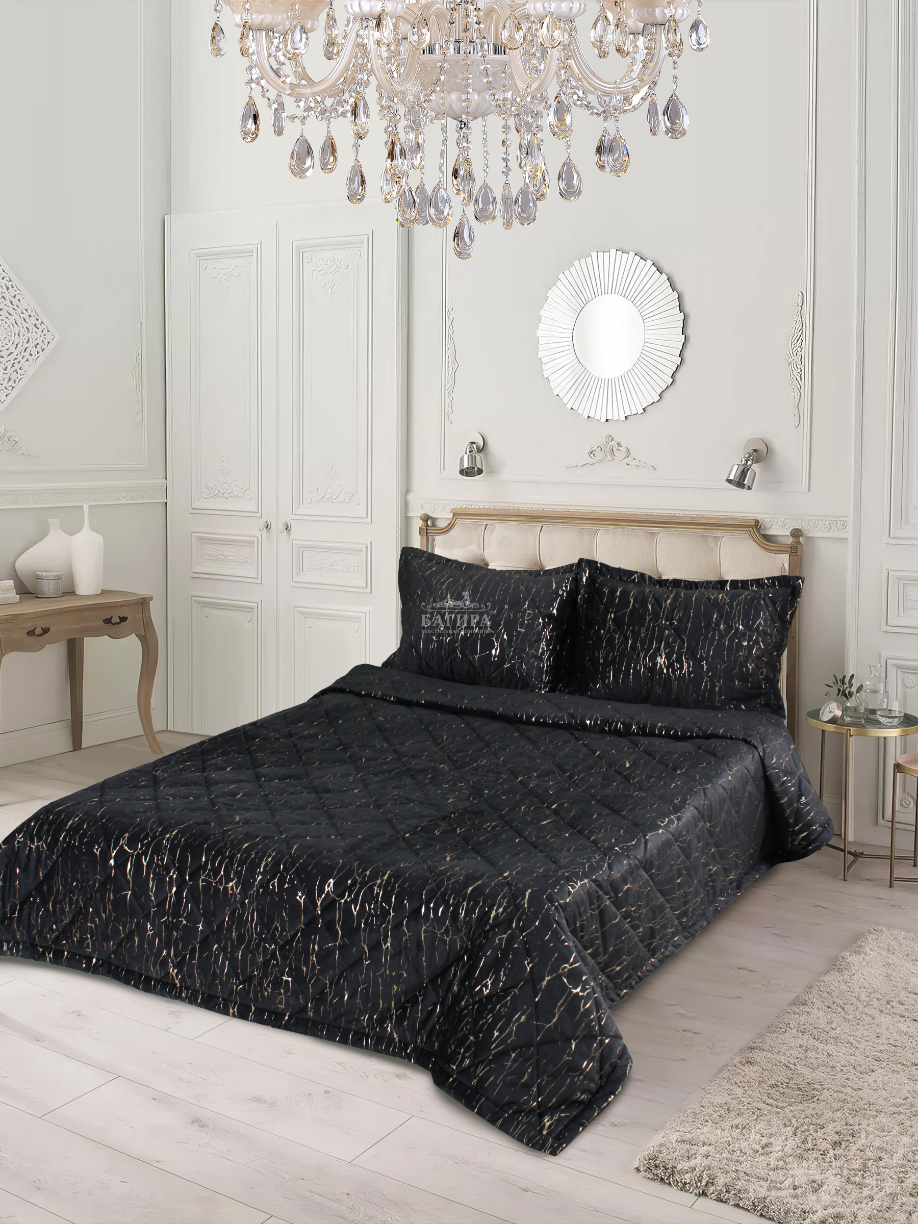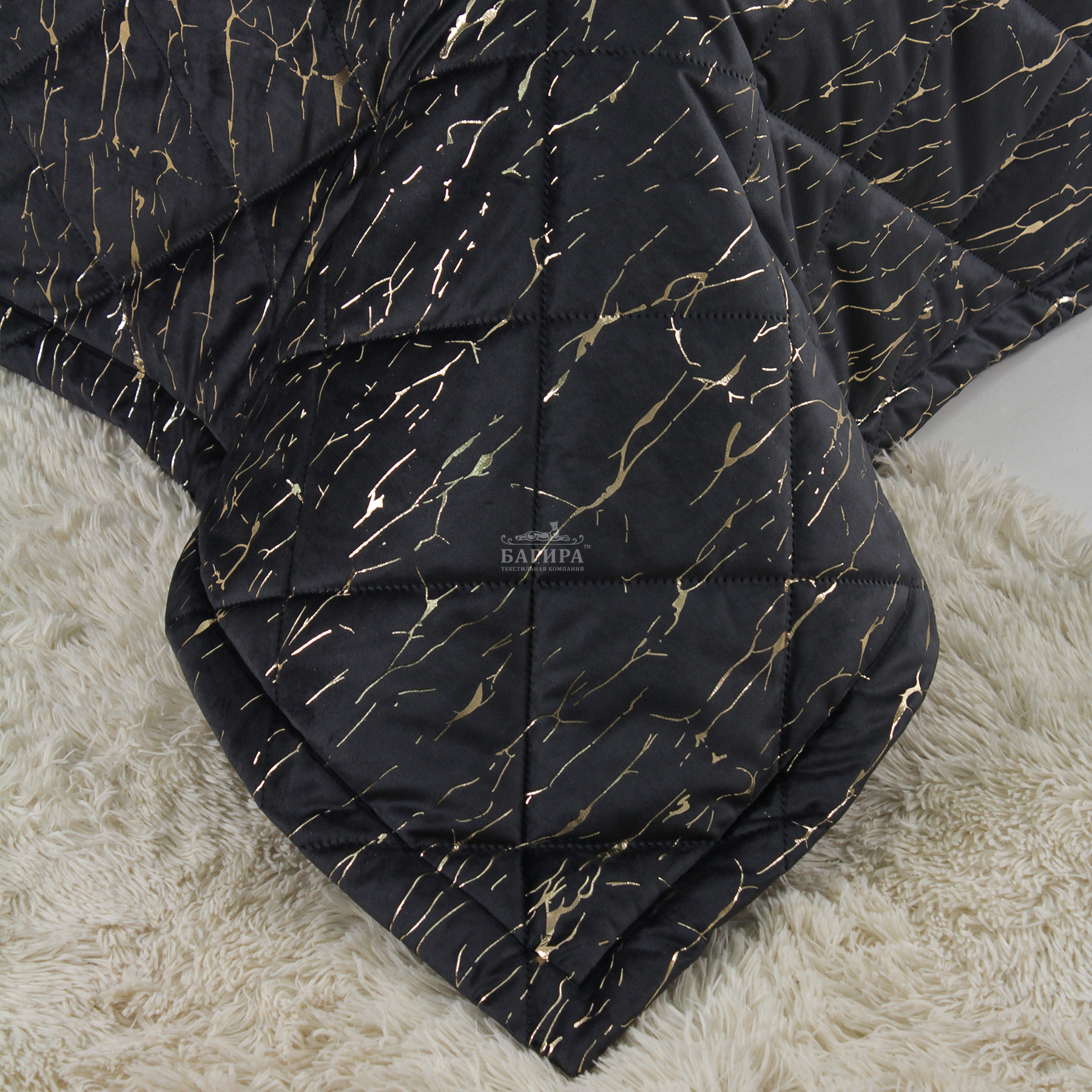 Покрывало Бархат мрамор "LUXURY" Черный