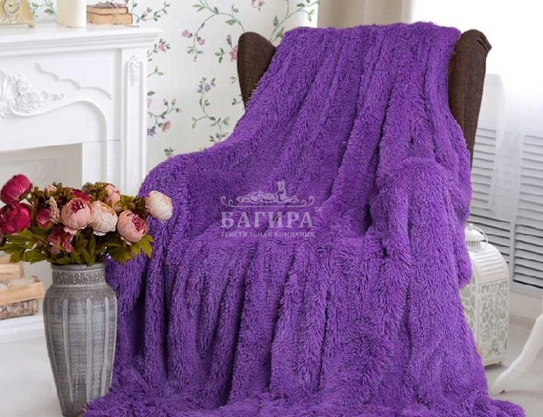 Покрывало"Искусственный Мех" (длинный ворс) Фиолетовый
