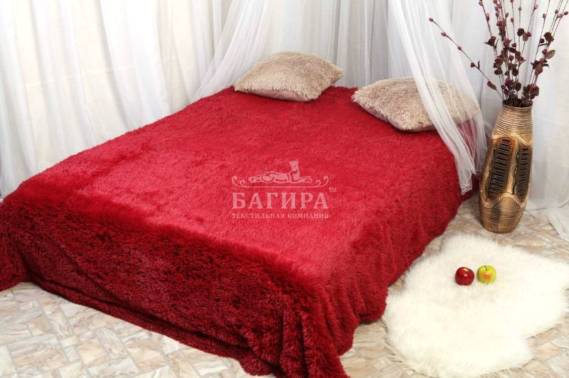 Покрывало"Искусственный Мех" (длинный ворс) Красный