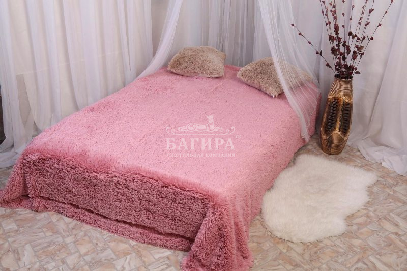 Покрывало"Искусственный Мех" (длинный ворс) Розовый