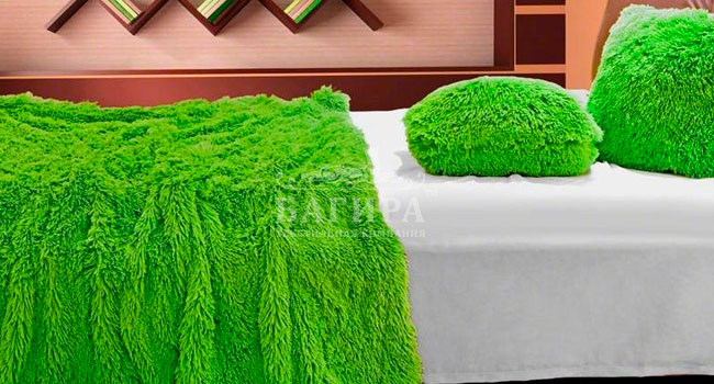 Покрывало"Искусственный Мех" (длинный ворс) Ярко-зелёный