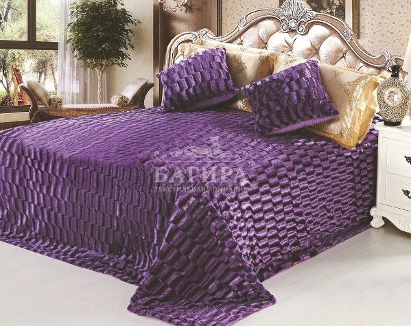 Покрывало двустороннее "Искусственный Мех" Фиолетовый с кубиками