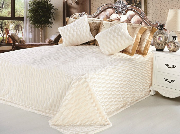 Покрывало двустороннее "Искусственный Мех" Молочный