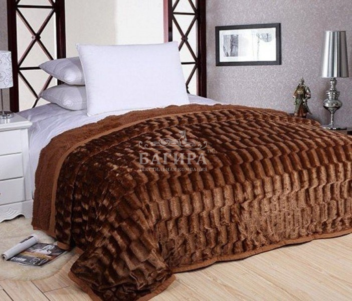 Покрывало двустороннее "Искусственный Мех" Шоколад с кубиками