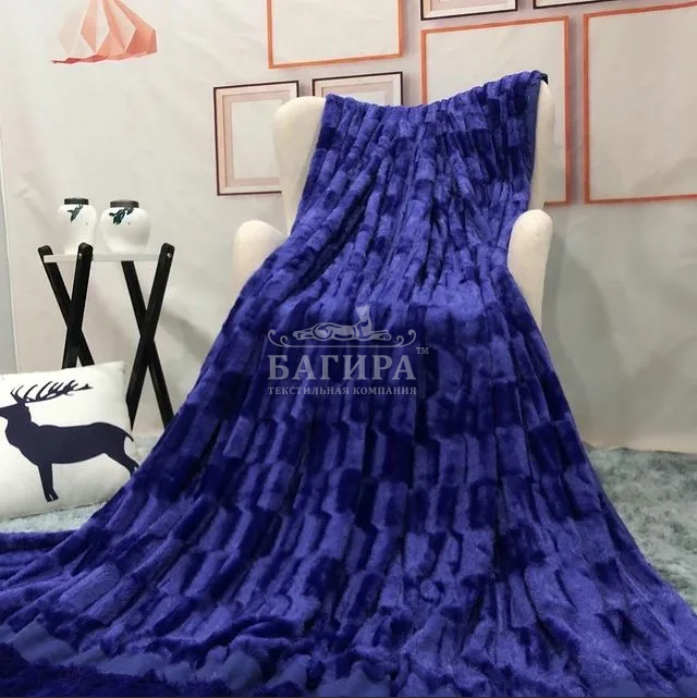 Покрывало двустороннее "Искусственный Мех" Ультрамарин с кубиками