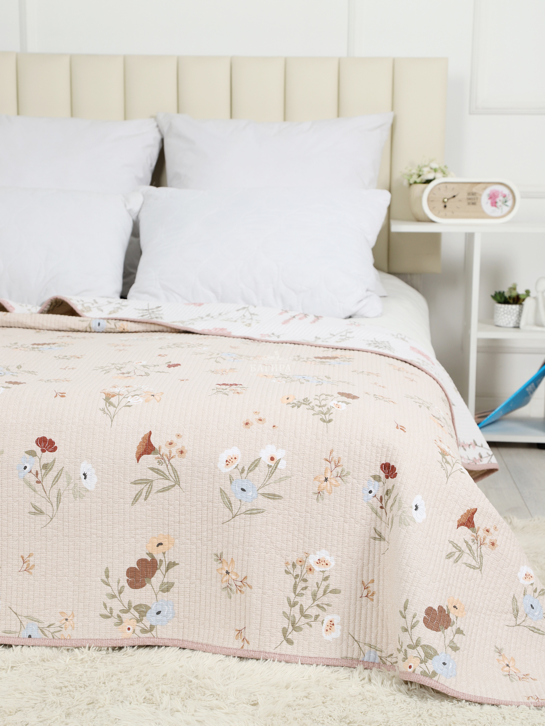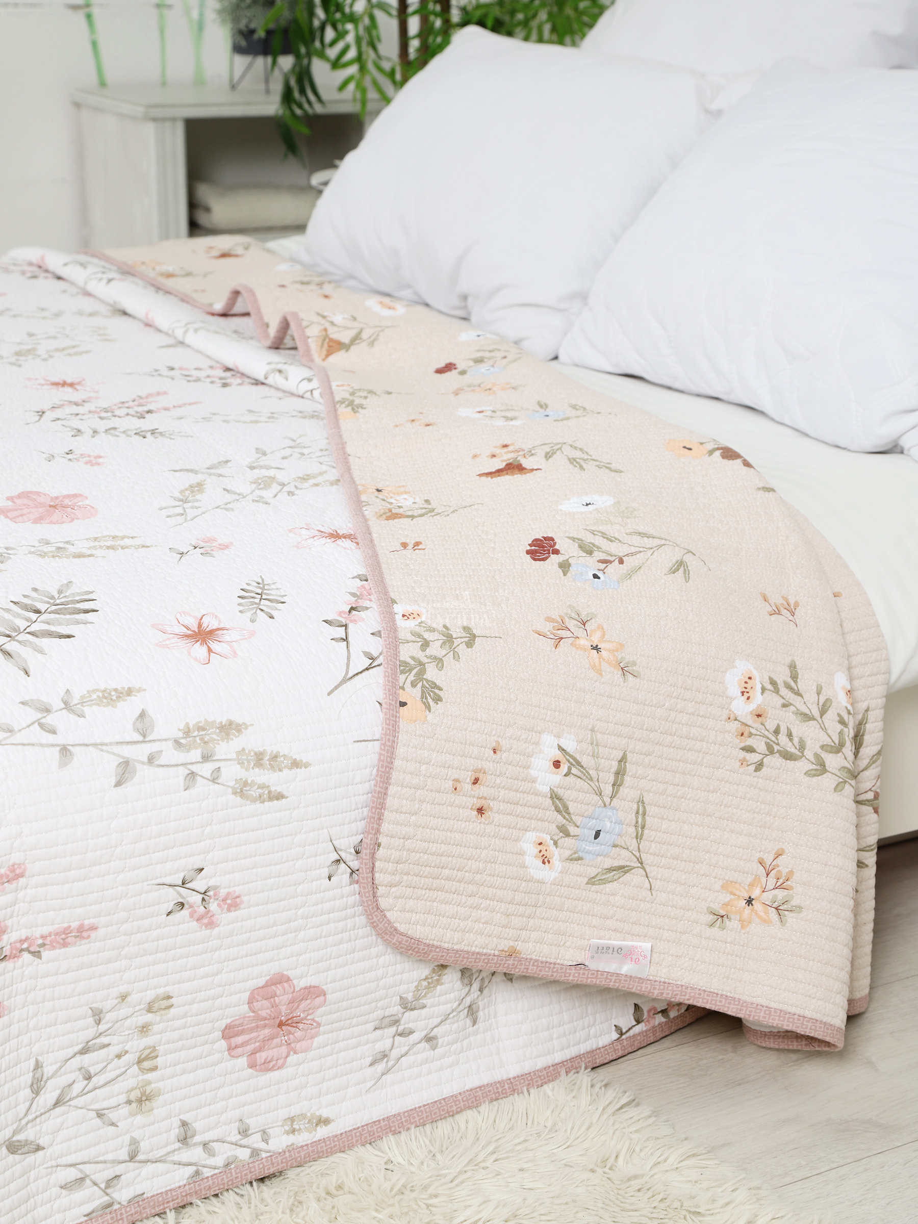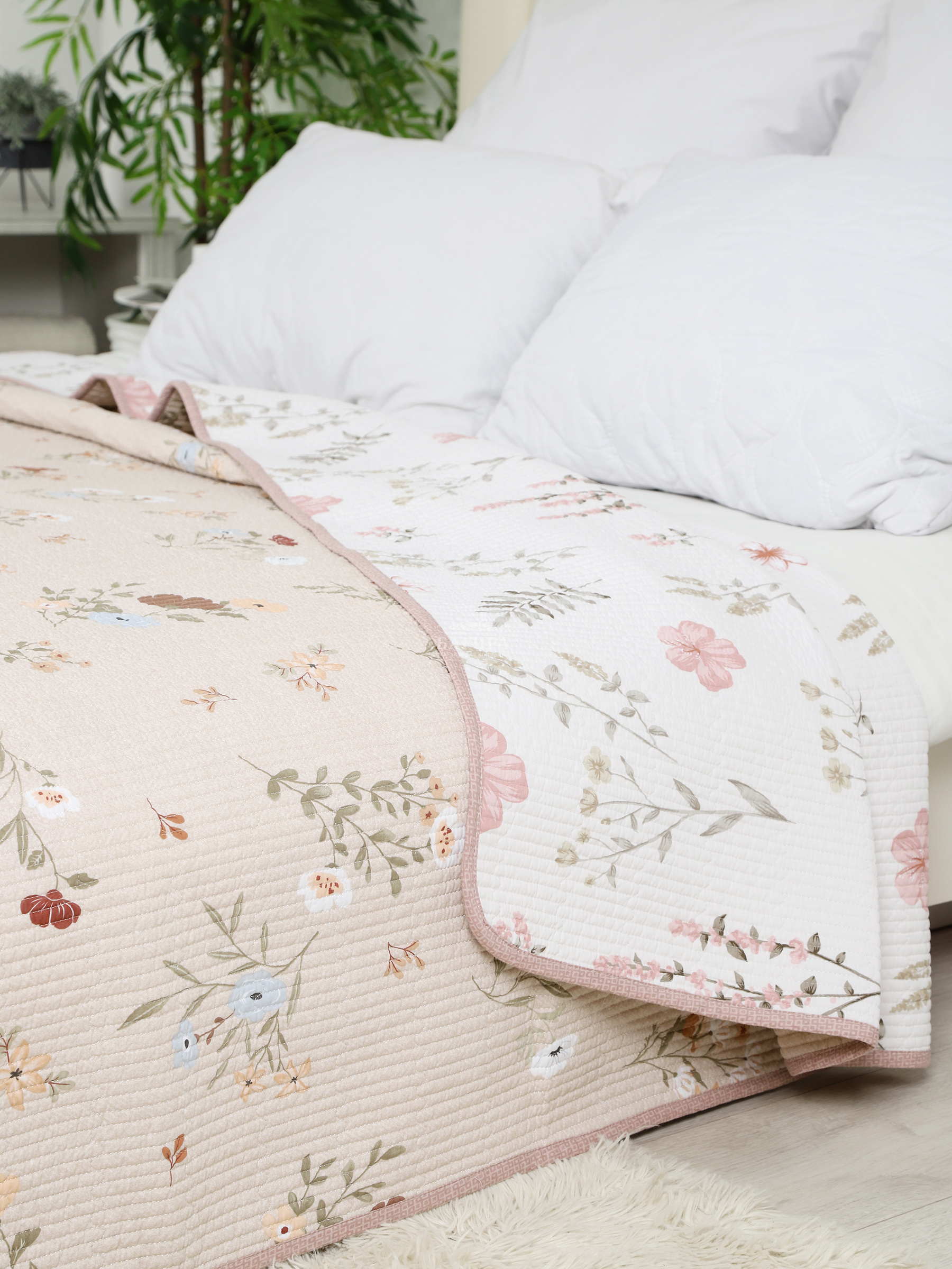 Двусторонний дизайн добавляет разнообразия в оформлении интерьера. Стеганая текстура придаёт изделию не только визуальную привлекательность, но и дополнительную прочность.