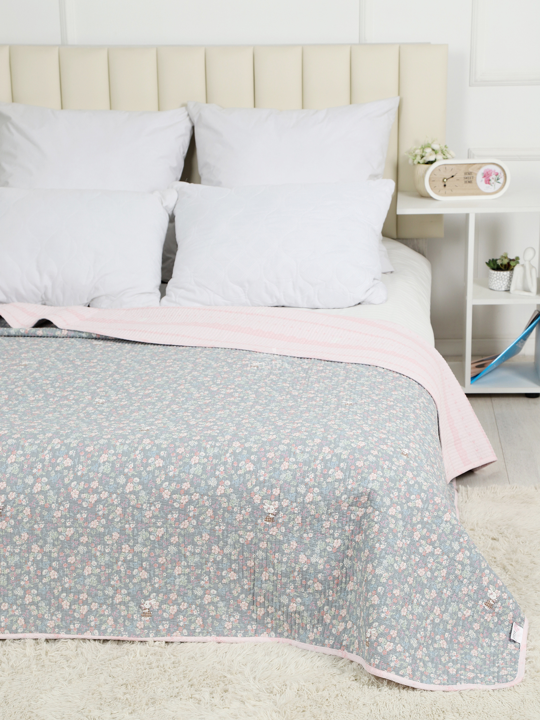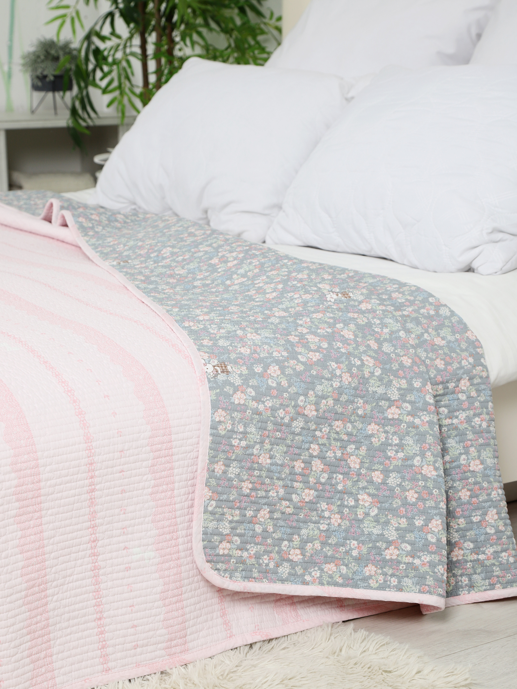 Двусторонний дизайн добавляет разнообразия в оформлении интерьера. Стеганая текстура придаёт изделию не только визуальную привлекательность, но и дополнительную прочность.