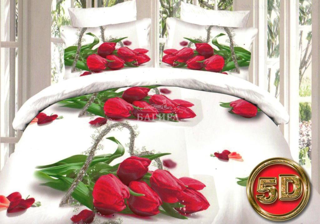 Покрывало "Полисатин 5D" Алые тюльпаны