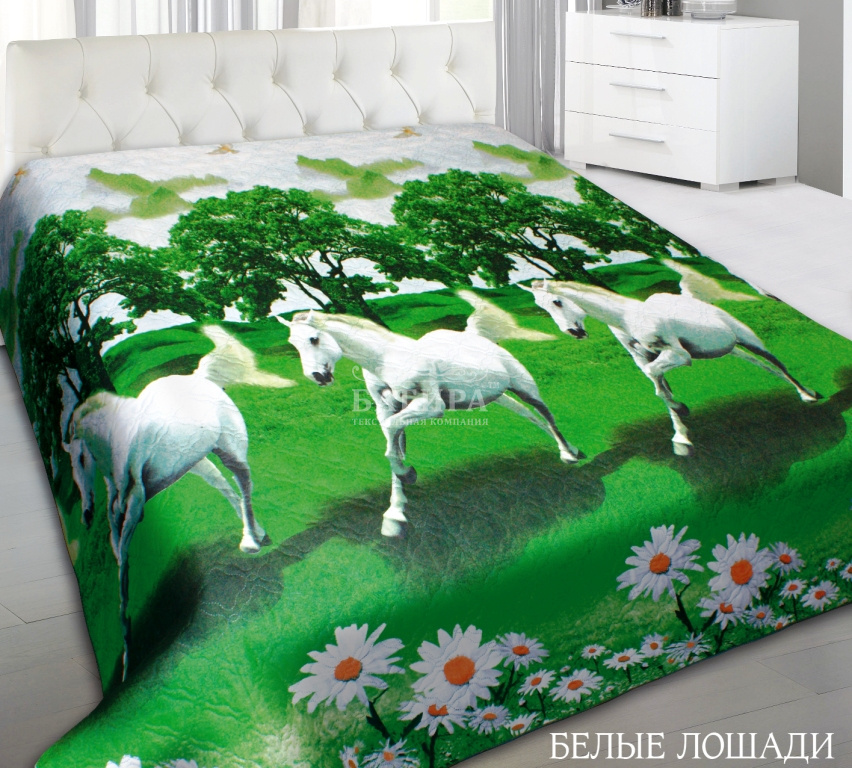 Покрывало "Полисатин 5D" Белые лошади