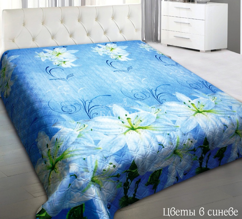 Покрывало "Полисатин 5D" Цветы на синем