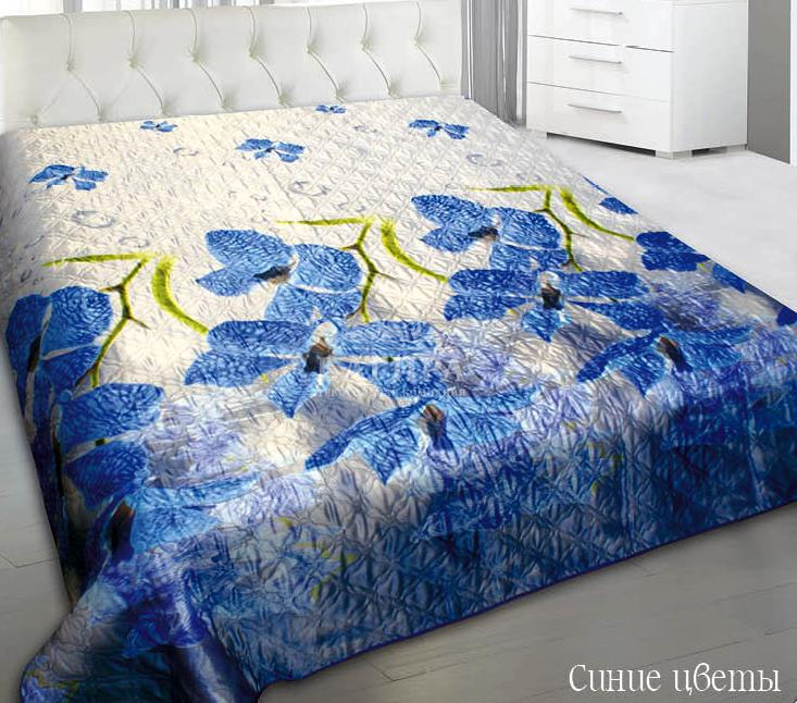 Покрывало "ШЕЛК 5D" Синие цветы