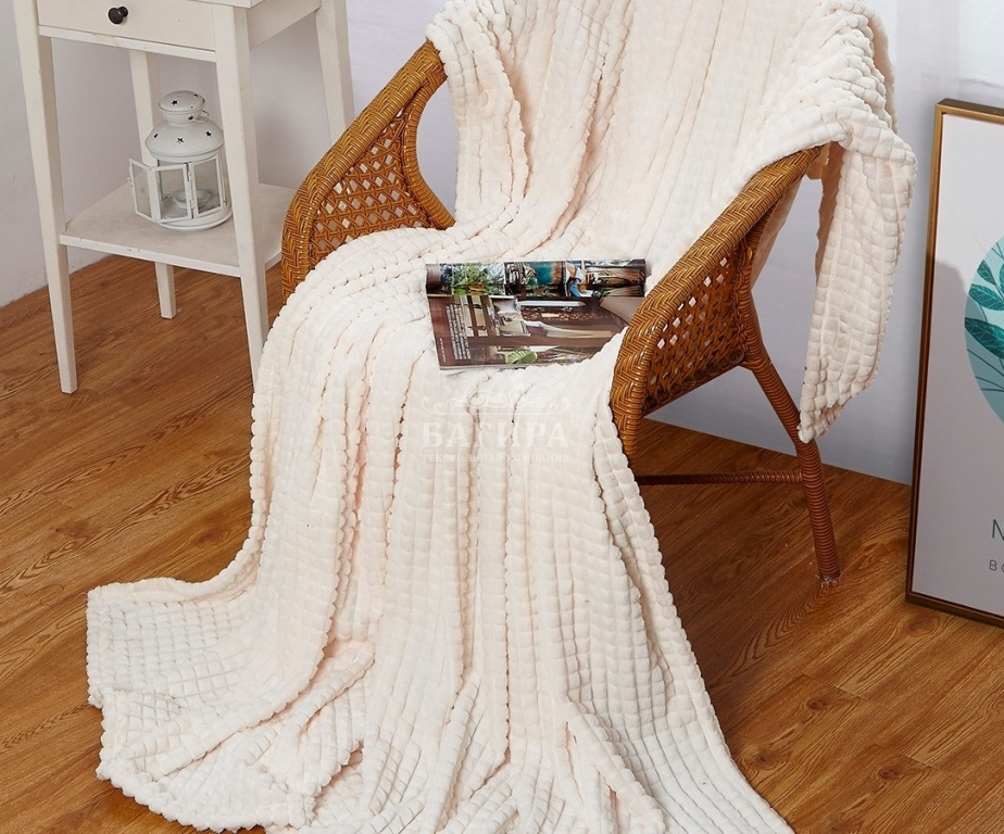 Покрывало "Велсофт" однотонное Сливки (кубики)