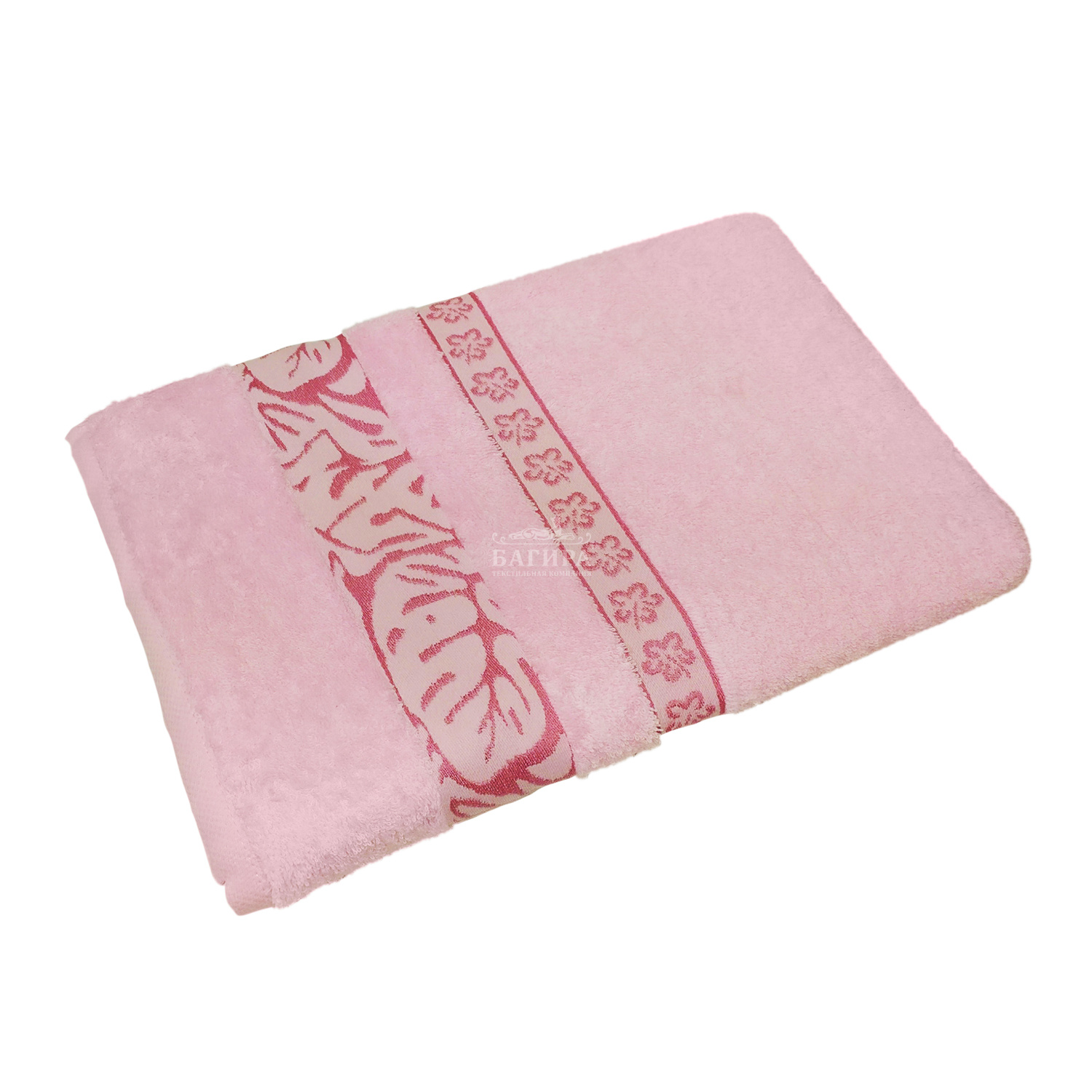 Полотенце Махровое "Листья" Светло-розовый