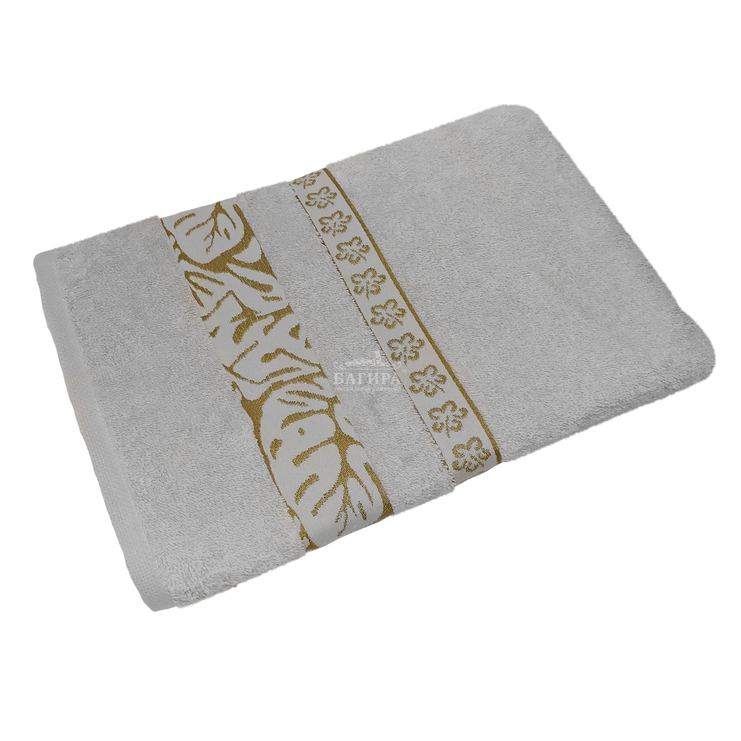 Полотенце Махровое "Листья" Светло-серый