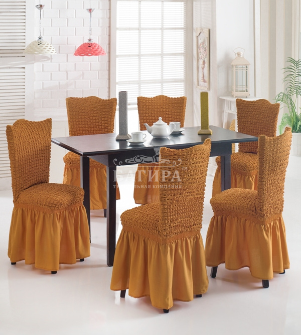 Чехлы на стулья с оборкой Горчичный