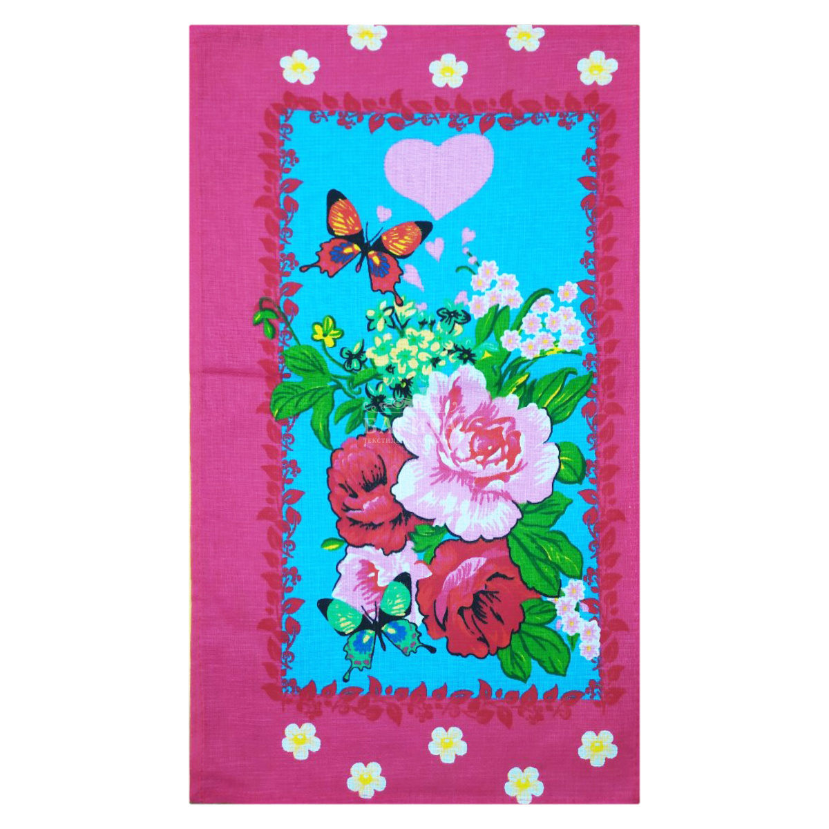 Полотенце Вафельное "Букет цветов" Голубой