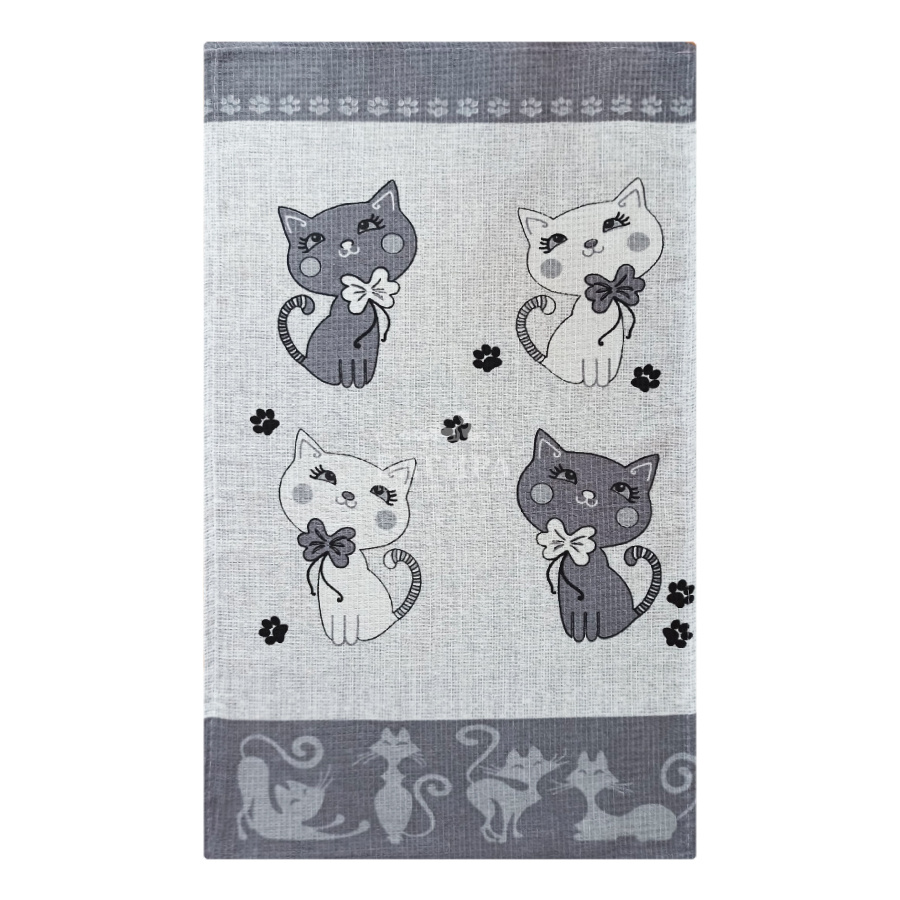 Полотенце Вафельное "Милые котики" Серый