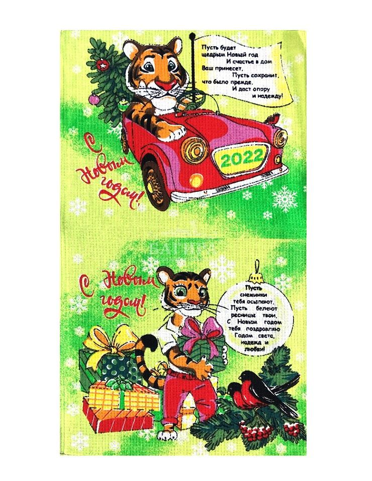 Полотенце Вафельное "Новогодний подарок" Салатовый