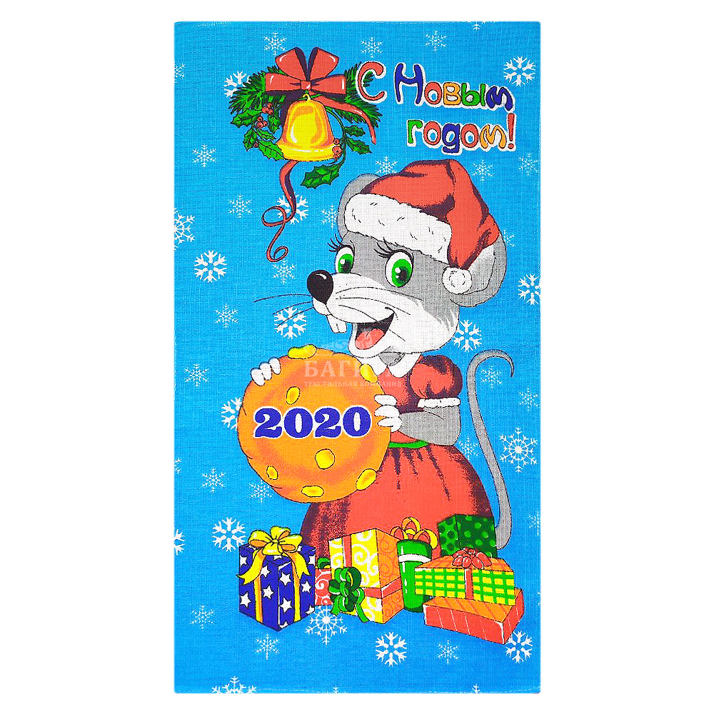 Полотенце Вафельное "Новый год" Голубой
