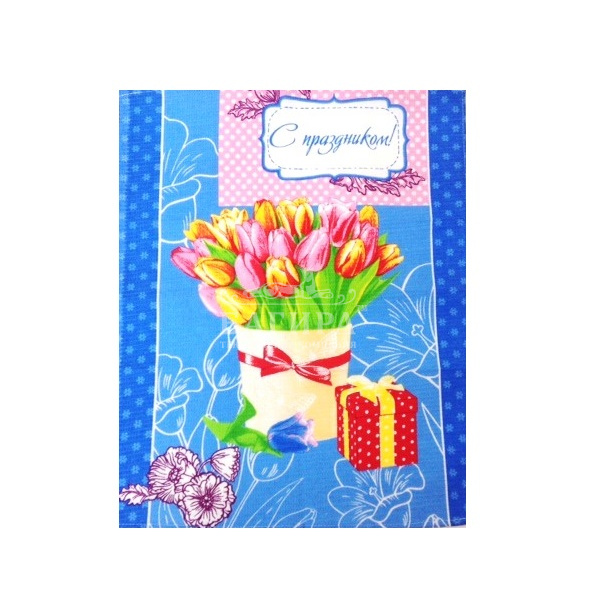 Полотенце Вафельное "С праздником" Синий