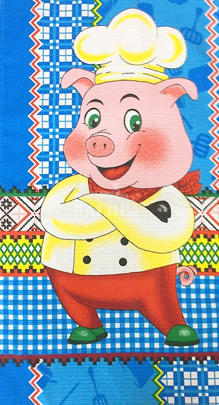 Полотенце Вафельное "Шеф хрюша" голубой