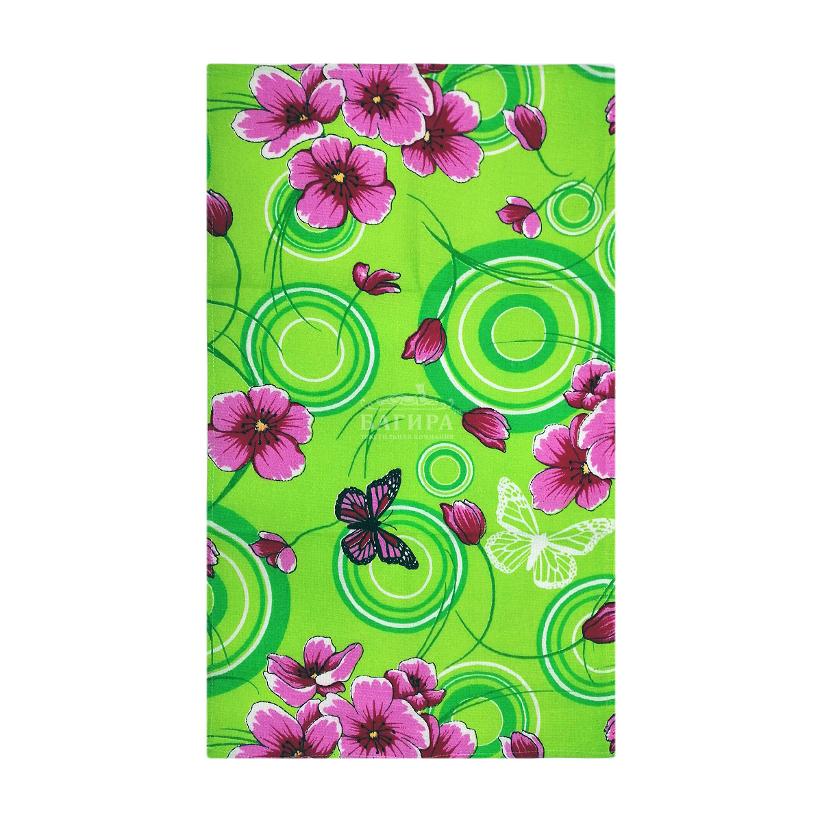 Полотенце Вафельное "Цветы" зеленый